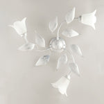 Plafonnier en fer blanc argenté avec trois lumières Albâtre Verre blanc 67x h20 cm