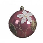 Boule de Noël en verre avec dentelle de velours rose 8 cm