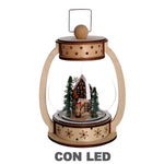 Boule de verre led bois lanterne naturel cm17x13h23,5