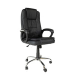 Le dossier est équipé de renforts latéraux pour favoriser une posture correcte et le revêtement en cuir synthétique de haute qualité donne une touche d'élégance. Les accoudoirs au design moderne offrent un confort et un style supplémentaires.