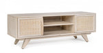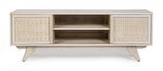 structure en manguier, dossier en mdf. portes d'entrée en rotin. peinture à base de nitrocellulose avec décapage blanc. pieds à assembler.