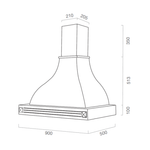 Hotte de cuisine rustique blanche DIAMANTE avec cadre en bois marqueté de 90 cm
