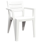 Chaise Keter JULIE blanc Fauteuil d'extérieur Keter Julie avec structure en résine inaltérable, résistant au gel et aux intempéries et aux rayons UV Finition effet bois. Dimensions 61x58xH79 cm. couleur blanche