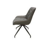 Chaise de salle à manger grise avec dossier en similicuir foncé et pieds noirs