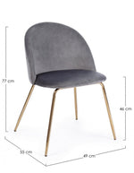 Chaise en velours gris et pieds dorés