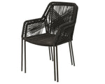 Chaise noire empilable Seville en PP avec corde pour l'extérieur avec coussin