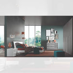 La chambre Jolanda en béton et frêne blanc est le choix parfait pour créer un environnement élégant et moderne dans votre maison. Cet ensemble de meubles se compose d'une armoire à 6 portes battantes, d'un lit double avec tête de lit en bois, d'une commode 3 tiroirs, de tables de chevet 2 tiroirs et d'un miroir carré.