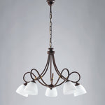Lustre fer noir rouille cinq lumières abat-jour verre blanc albâtre 69x h52 cm
