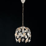 Lustre suspendu en fer ivoire doré clair et strass une lumière 30x h37 cm