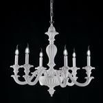 Lustre 6 lumières shabby en bois blanc et pulpe