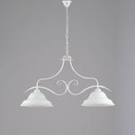 Lustre classique en fer blanc argenté avec verre blanc deux lumières 85x h51 cm