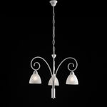 Lustre Shabby en fer blanc, Albâtre Abat-jour en verre blanc trois lumières 48x h50 cm