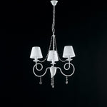 Lustre en fer blanc trois lumières déco shabby et strass Abat-jour blanc 60x h67 cm