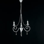 Lustre en fer blanc trois lumières déco shabby et strass 50x h67 cm