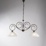 Lustre en fer Marron Or deux lumières Albâtre Abat-jour en verre blanc 78x h54 cm
