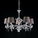 Lustre en fer laqué blanc à décor shabby 5 lumières