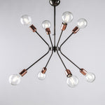 Lustre moderne en fer noir finitions cuivre huit lumières 65x h67 cm