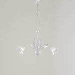 Blanc Lustre en fer argenté trois lumières Albâtre Verre blanc 60x h43 cm