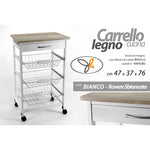 Chariot de cuisine blanche avec paniers et roues 47 x 37 x 76 h cm cm