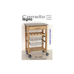 Chariot de cuisine, avec haut en acier, tiroir, porte-porte et paniers amovibles.