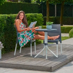 Ajoutez une touche de classe britannique à votre piscine ou à votre terrasse avec l'ensemble de bistrot Chelsea de Keter . Cet ensemble est livré avec deux élégantes chaises de jardin au design rond et une table ronde assortie fabriquée à partir d'un mélange saisissant de plastique dans un cadre en osier et des pieds en métal. Le dessus de table est fait d'un matériau robuste et durable qui est protégé contre les UV, de sorte qu'il ne se décolore pas au soleil.