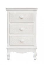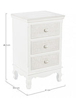 Mdf. Étagères et façades avec incrustations de motifs floraux. Finition avec un vernis à l'eau mat. Poignées en polyrésine. Tailles = 41a - 33.5b - 68.5h