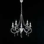 Lustre en fer blanc cinq lumières déco shabby et strass 58x h72 cm