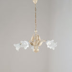 Lustre en fer Ivoire Or cinq lumières Albâtre Verre blanc 68x h43 cm