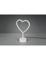 La lampe à poser HEART par Trio Lighting est composée d'une base ronde en plastique finition blanc et d'un diffuseur avec LED intégrée en forme de cœur, interrupteur ON/OFF inclus.
