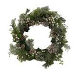 Couronne de 56 cm avec feuilles vertes en plastique/tissu/baies blanches/pommes de pin