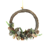 Couronne avec pommes de pin et baies blanches cmø28h7