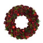 Structure en polystyrène recouverte de pommes de pin et d'objets en plastique