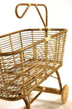 Lit bébé en rotin avec roues en bois