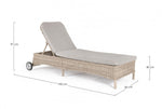 Détails Structure en aluminium thermolaqué (polyester), tressage en fibre synthétique (rond 5, 3mm). Coussins déhoussables en tissu oléfine anti-solaire (100% polypropylène). Roues en aluminium revêtues de caoutchouc. Taille 66a - 190b - 97h - 40h1