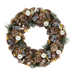 Couronne enneigée avec pommes blanches et pommes de pin cm ø30h