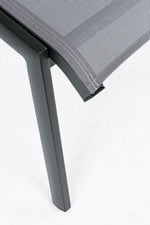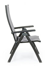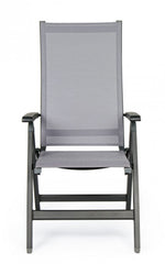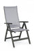 cadre en aluminium, revêtement en poudre (polyester). assise et dossier rembourrés en textilène phifer 1x1. dossier inclinable (5 positions). pliant
