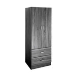 Armoire de chambre grise à deux notes avec deux tiroirs 60 x 42 x 180 h cm Fourni en kit à assembler Matériau: bois enrobé