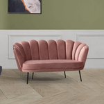 Canapé deux places Orel en velours forme coquillage vieux rose et pieds noirs