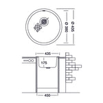 Évier de cuisine cockpit encastrable en inox diam. 43,5 cm