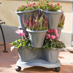 Le kit de trois pots de trèfle est fabriqué en polypropylène et comprend une soucoupe avec des roues pivotantes. Ce produit gris est idéal pour les amateurs de jardinage à la recherche d'un grand contenant pour une utilisation en extérieur. D'une contenance de 6 litres, le vase trèfle convient également aux espaces confinés.