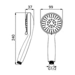 Douchette équipée d'une poignée antidérapante et donc adaptée aux personnes âgées ou à mobilité réduite. La finition est en chrome poli et blanc. Le matériau de fabrication est l'ABS. La douchette a 4 jets d'un diamètre de 85 mm. L'accessoire est universel et mesure 1/2". La hauteur de la douche est de 240 mm. Le design est simple avec des formes arrondies qui lui permettent de s'adapter à n'importe quel décor de salle de bain. L'emballage respecte de loin l'environnement grâce au matériau utilisé qui peut être recyclé à un pourcentage élevé.