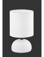 La lampe à poser LUCI par Trio Lighting est composée d'une structure entièrement blanche, avec un socle en céramique et un abat-jour en tissu blanc, diamètre 14 cm. Interrupteur marche/arrêt sur câble.