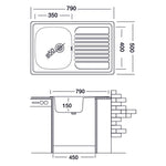 Évier encastrable en acier inoxydable, appartenant à la ligne Classic. Cet évier comporte une cuve simple avec un égouttoir positionné à droite. La surface satinée donne un look élégant et moderne. Comprend un drain de rechange de 3 ½ pouces et un drain d'égout de 50 mm de diamètre. D'une épaisseur de 0,50 mm, cet évier est solide et durable. Il comporte un trou de robinet pour une installation facile. Les dimensions de l'évier sont de 50x79 cm, tandis que la baignoire mesure 350x400x150 mm. Cet évier est conçu pour s'adapter à une taille d'armoire de 45 cm.