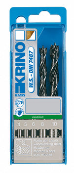 MÈCHES À BOIS hélicoïdales à 2 tranchants avec pointe centrale DIN 7487. Queue cylindrique, pour bois et dérivés. Petite série de 5 pièces de 4-5-6-8-10 mm. En coffret plastique