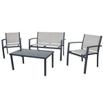L'ensemble salon de jardin comprend 1 banc, 2 fauteuils et 1 table basse.