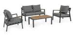 - accoudoirs et plateau table basse en polywood (matériau composite d'aspect proche du bois) 90% polystyrène 10% sbs coloris teck.