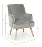 Fauteuil de salon vintage en velours gris ADELINE 60x67x h79 cm