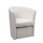 Fauteuil rembourré recouvert d'éco-cuir blanc et pouf amovible