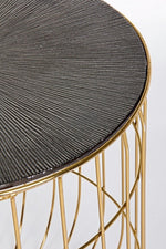 - Dessus en aluminium amovible avec finition plaquée et vieillie.