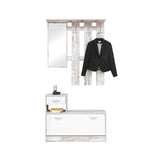 Le meuble penderie d'entrée vintage blanc est parfait pour organiser l'entrée avec style. Le modèle Rudolf est composé d'une structure et d'une façade blanches vintage, qui donnent une touche d'élégance à l'environnement. Cet ensemble comprend un miroir, idéal pour jeter un dernier regard avant de quitter la maison, 3 patères chromées pour suspendre vos manteaux et vestes, un tiroir pratique pour ranger de petits objets et un abattant avec 2 poignées pour créer une étagère de support supplémentaire. Les poignées chromées ajoutent une touche de raffinement au meuble penderie. Les dimensions du meuble sont : largeur 100 cm, profondeur 25 cm, hauteur 180 cm. Il est fabriqué en mélamine de haute qualité, garantissant une longue durée de vie. Le meuble penderie est livré en kit à assembler, mais grâce aux instructions claires et détaillées, le montage sera rapide et facile. Ajoutez une touche de style et de fonctionnalité à votre entrée avec le meuble d'entrée blanc vintage.